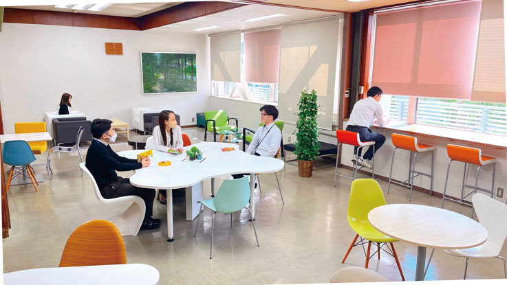 ▲フレックス制度導入と同時に設置されたリフレッシュルーム。カフェのような落ち着いた雰囲気で、職員がくつろげる空間に。