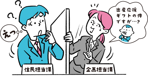 しかもその後、福祉担当課にも行ってみると「ギフトの内容が乏しい。案内の配布にも協力できない」と……。定期健診の場で住民に配布する予定だったので、話が行き詰まってしまったのです。