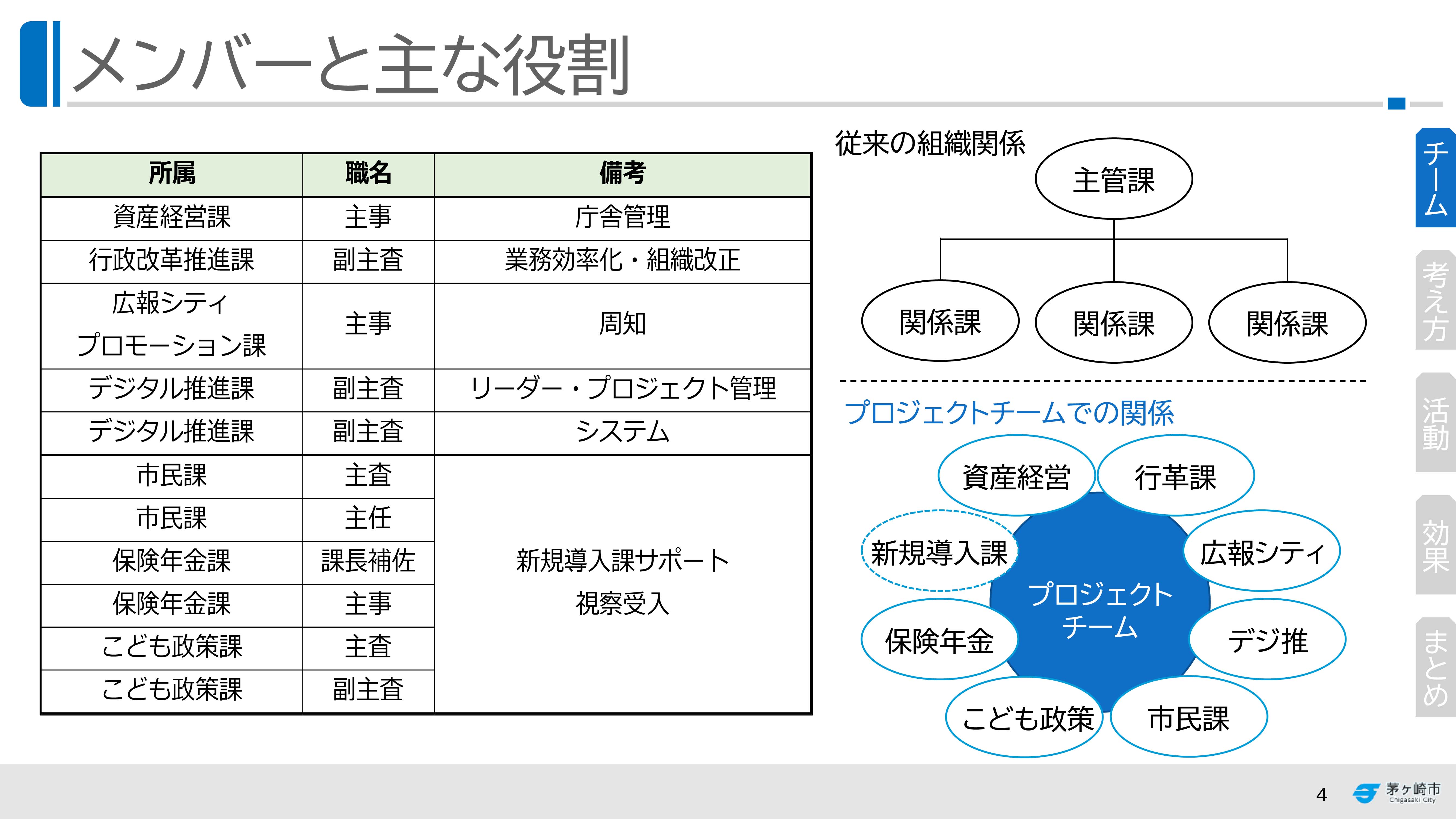 まず、書かない窓口の導入に先んじて、令和5年2月にプロジェクトチームを設置しました。6課12名、若手職員を中心に発足しています。
