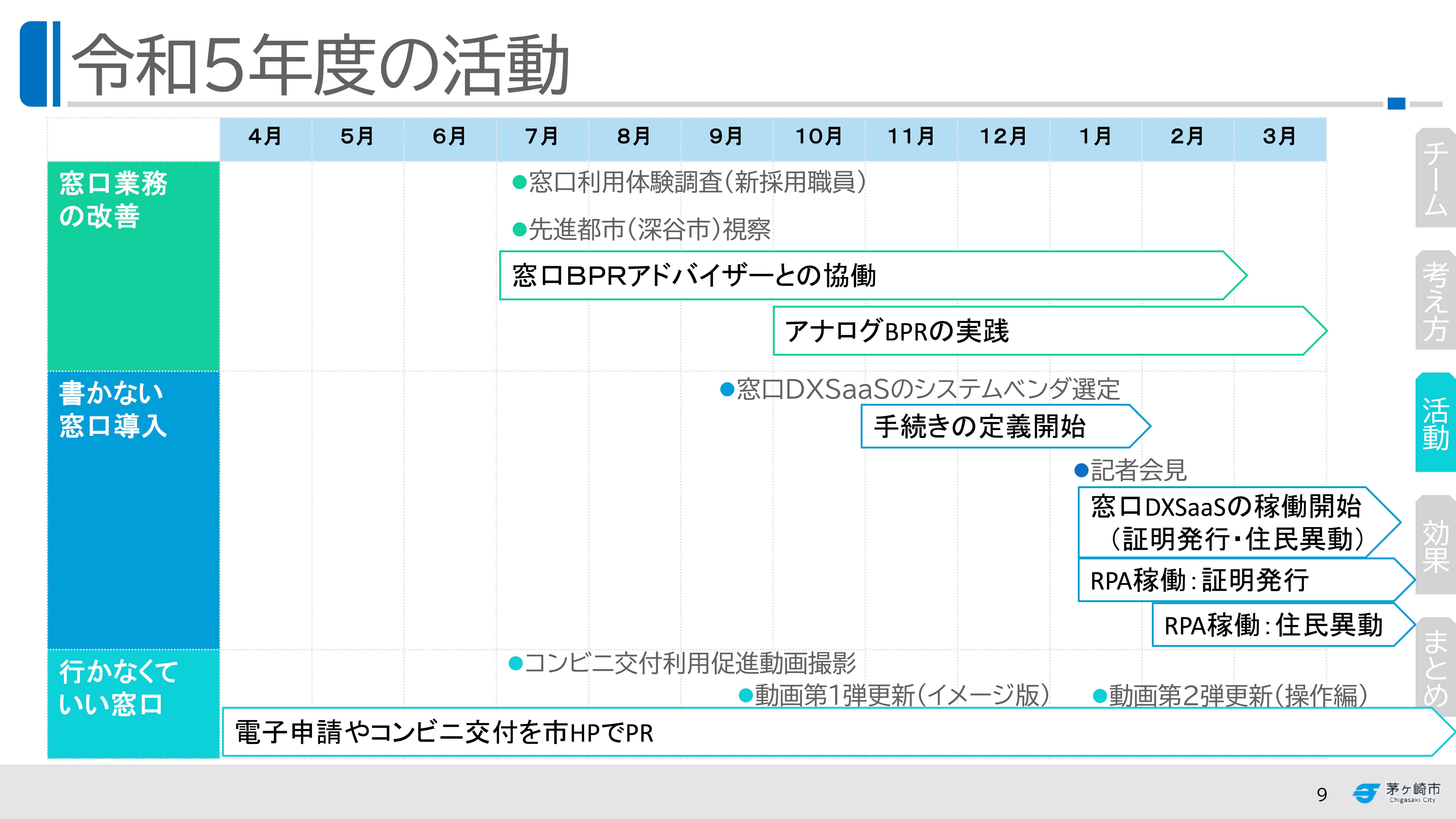 また、楽らく窓口の推進については、今はまだ限定的なので、今後は住民の移動届や、その入力をRPA化する。あるいは手続きの見える化、庁舎のレイアウト変更など、アナログとデジタルを含めて推進していこうと考えています。