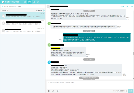 なお、いずれにしても、この「NFTを市場で販売する」といった仕組みの部分は民間企業の知見、ノウハウに頼らざるを得ないため、そこは民間との分業という整理とし、市としては、来訪特典に要する事務や経費の支出という役割分担を明確にすることで、克服することができた。