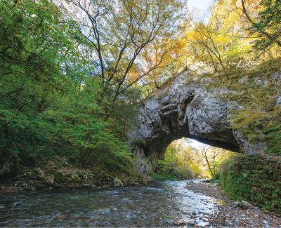 ▲岩でできた天然橋などが帝釈峡の見どころ。