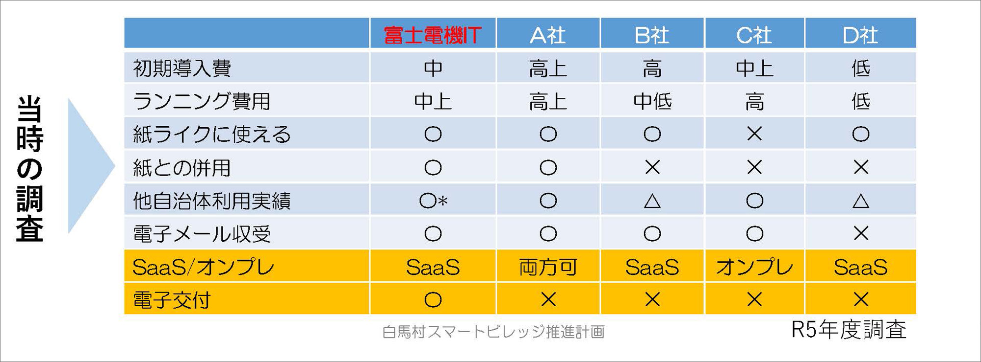さらに、電子交付(電子公印)との連携ができることも追加要望として挙げられました。この条件で当調査の結果、最終的に選択したのが富士電機です。電子交付ができる点と、SaaS対応が大きな点でした。