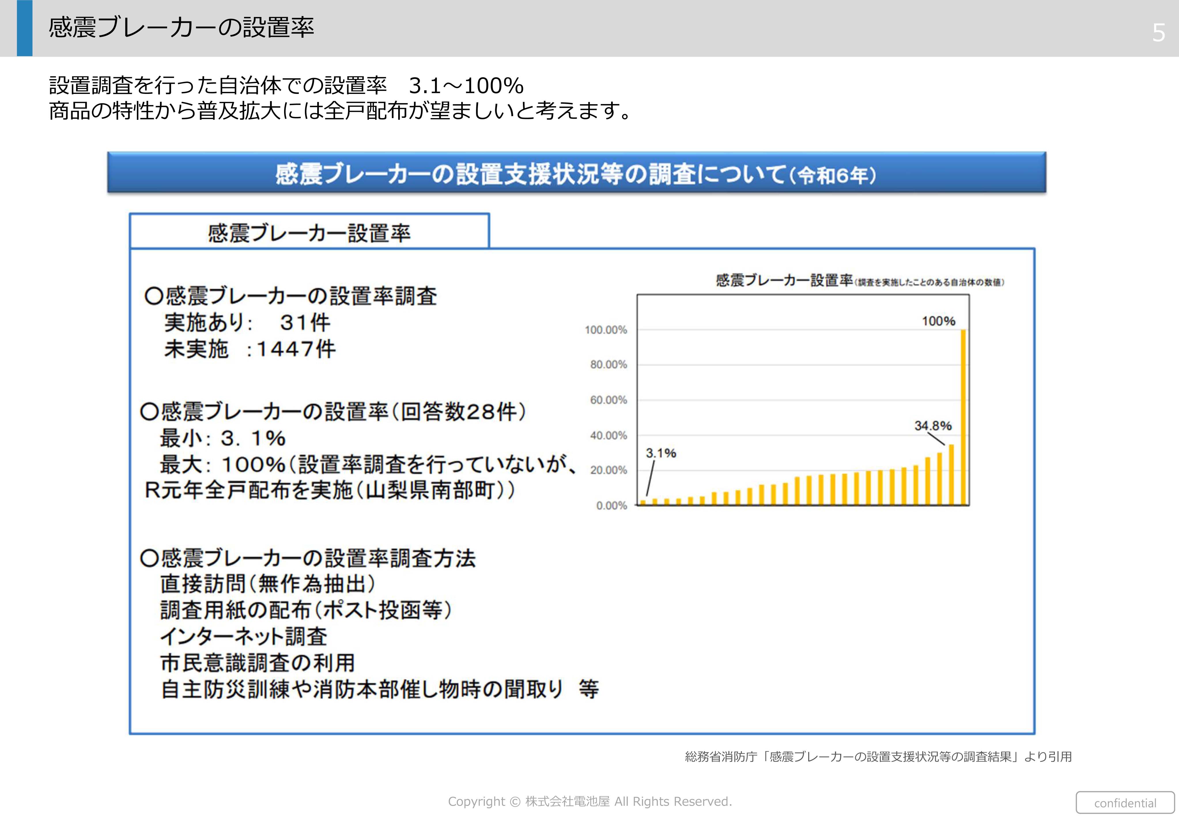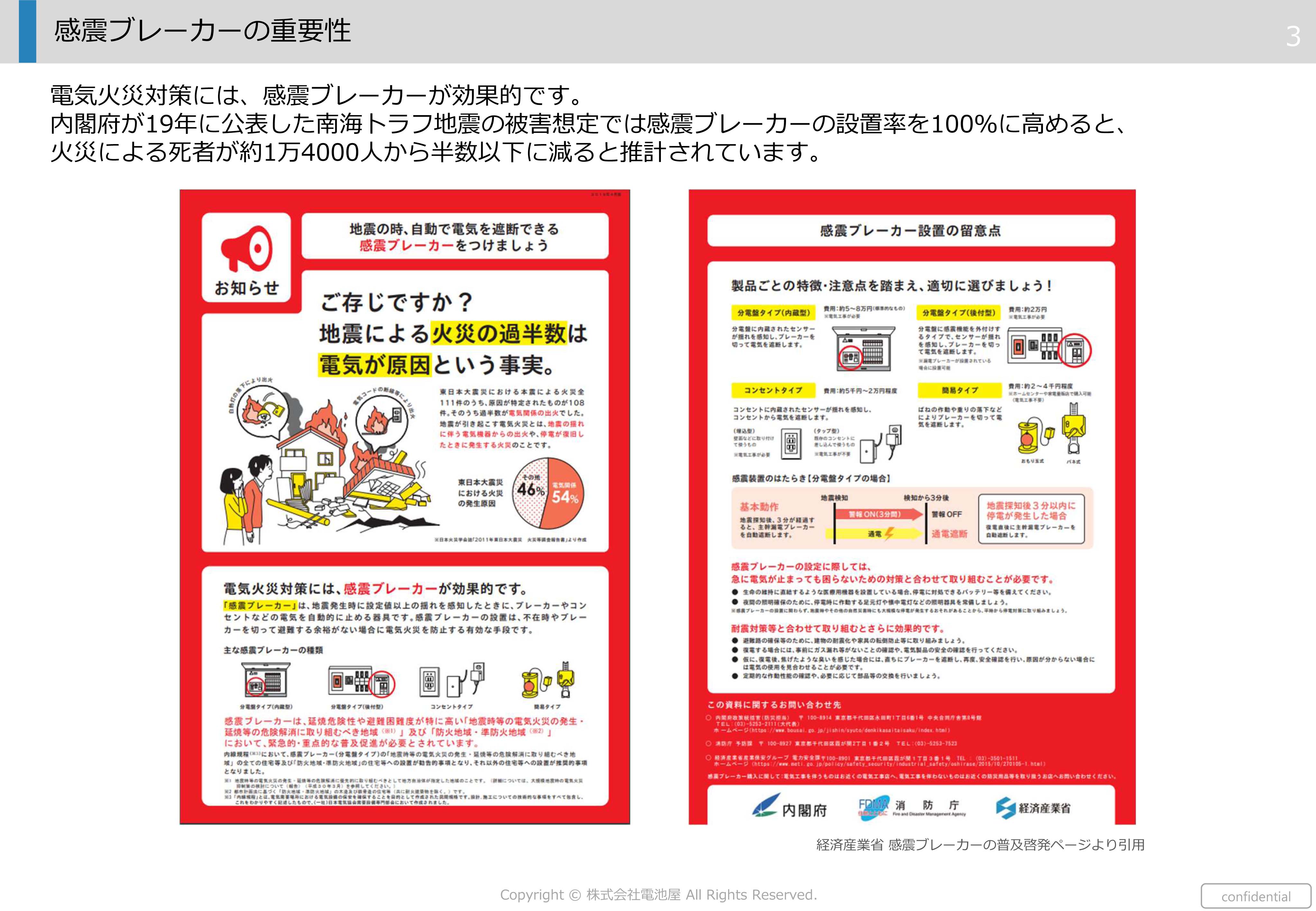 当社「電池屋」は、誘導灯や非常灯などの防災用品の企画・販売を行っている会社です。自治体や省庁の入札案件に対し、応札や応札業者の物品納品などで、ポータブル電源などの防災備蓄品をはじめ多くの納品実績があり、今回のテーマである“感震ブレーカー”も多数手がけています。