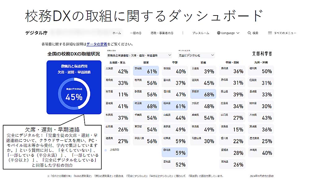 井上:ひと口に“デジタル化”といっても、このダッシュボードでは「ファックスがどれくらいなくなっているのか」といったことも全部入れている。ICTをどう使うかというだけでなく、色々な視点で判定されています。その前提で見てみると、取り組み状況は高くないといえます。