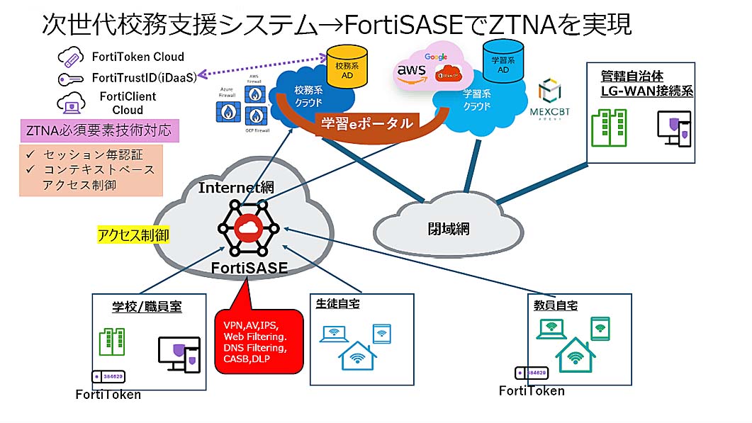 国、デジタル庁が取り組んでいる、GSSという各省庁を結ぶものがありますが、これがゼロトラスト・アーキテクチャを目指しており、現状でも到達できていません。当社の製品で説明すると、「FortiSASE」がゼロトラスト・ネットワークアクセスの要素技術に対応したものです。オンプレミスであれば「FortiGate」というハードウェアのアプライアンスで対応しています。