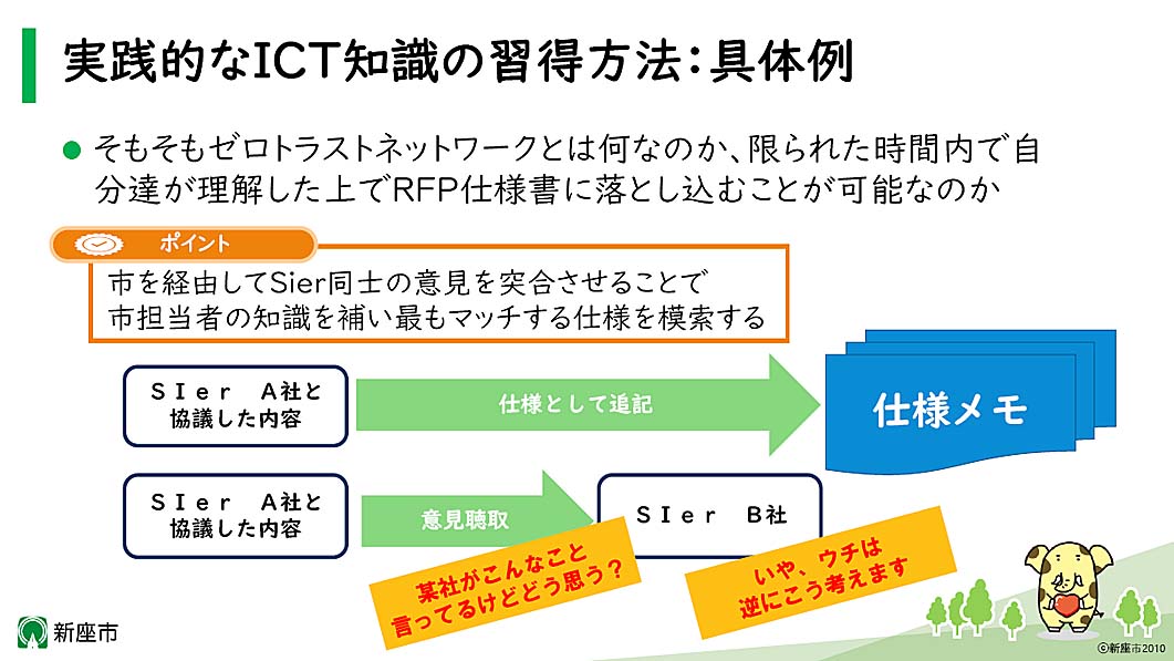 私たちにとって幸運だったのは、親身になって調整会議をしてくれる事業者が複数あったことでした。協議した内容で重要なポイントは仕様メモに追記し、各社の提案を突合させながらブラッシュアップしていくと、新たな問題点が見えてきます。こうしてより深い知識を得つつ、仕様の精度と中立性も高めることができました。