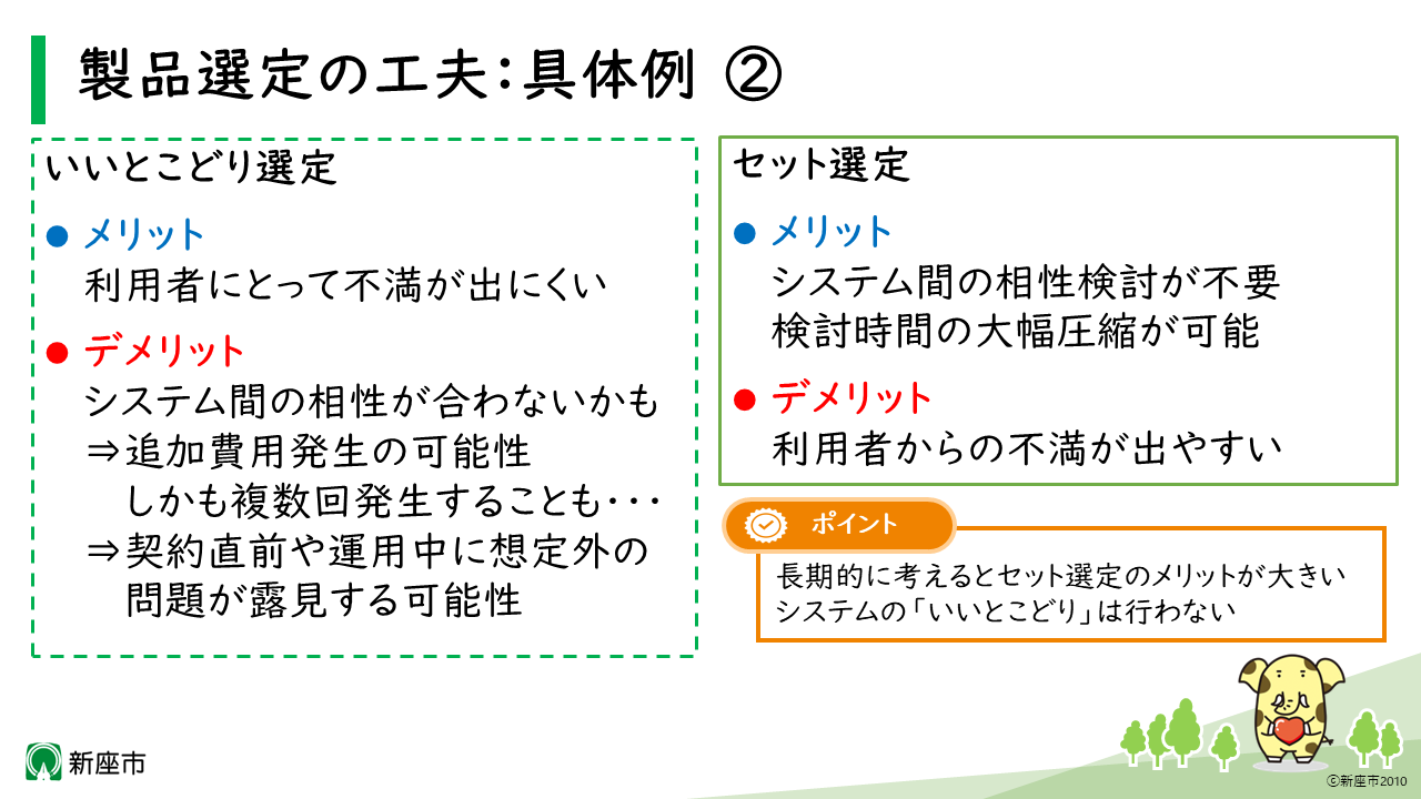 さらに、システムについても“いいとこどり”をやめて、SIerが選定するものをセットで導入することにしました。この手法により、大幅な選定時間の圧縮と業務負担の軽減が見込め、システム間の相性も良くなります。