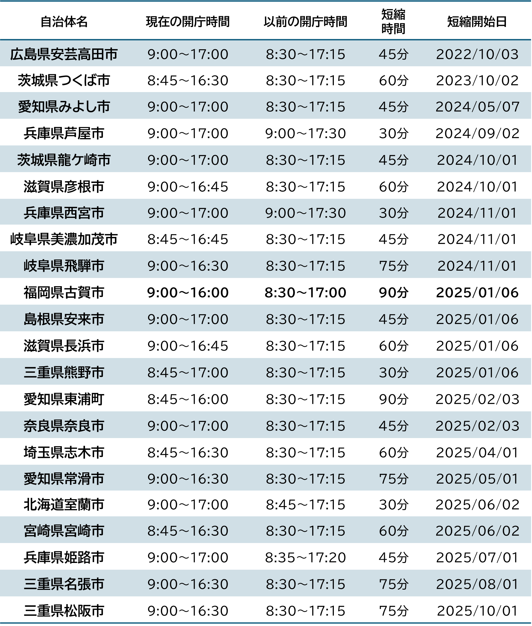 ※北海道室蘭市:一部庁舎では2025年6月から短縮を実施