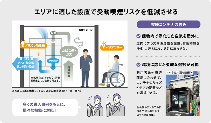 難しい条件をクリアしながら、道路上に喫煙所を新設できた。
