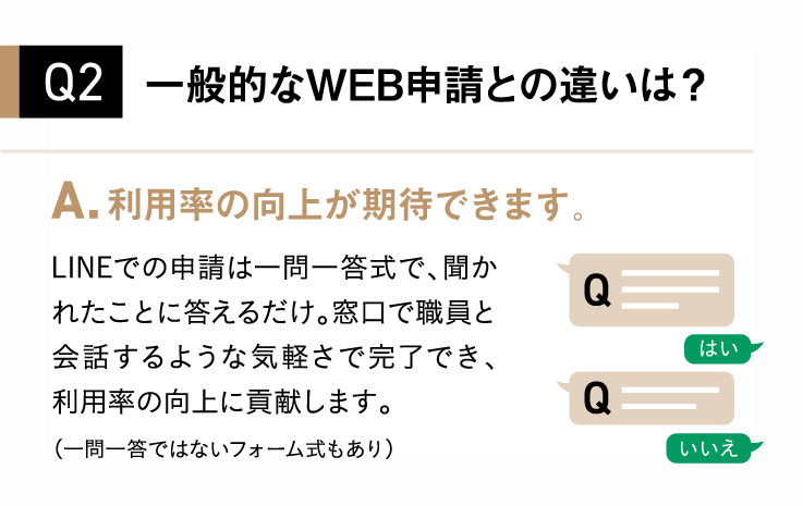 最初は5つほどの機能から始めて、徐々に数を増やしました。大切にしたのは“利用者目線”。私自身、子育て中に“子どもが寝ている間に、静かに片手で手続きしたい”と思うことが多く、それを実現したかったんです。設問を絞り、表現にも気を配っています。