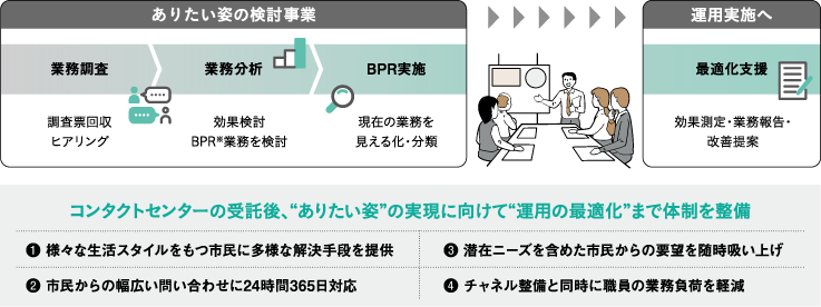 最終的にまとめた仕様にもとづき、コンタクトセンターの構築・運用業務の委託先を公募。市民の生活の変化に合わせた体制への整備が始まった。