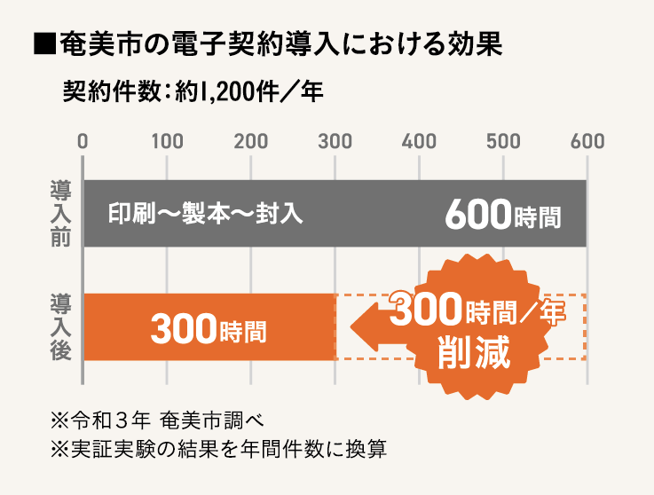 紙の契約書でやりとりする際、例えば、東京までの郵送には最短でも4日を要するという同市。台風が発生すると、船の欠航が1週間以上続くことも少なくない。しかも、支所の職員は押印のために、本庁まで車で30分以上かけて移動しなければならず、大きな負担になっていたという。