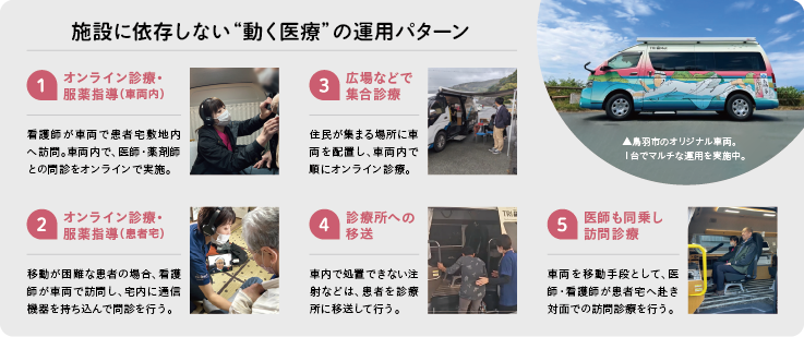 医師が動く方法ではなく、車両が動くことで診療機会の拡充を目指す。