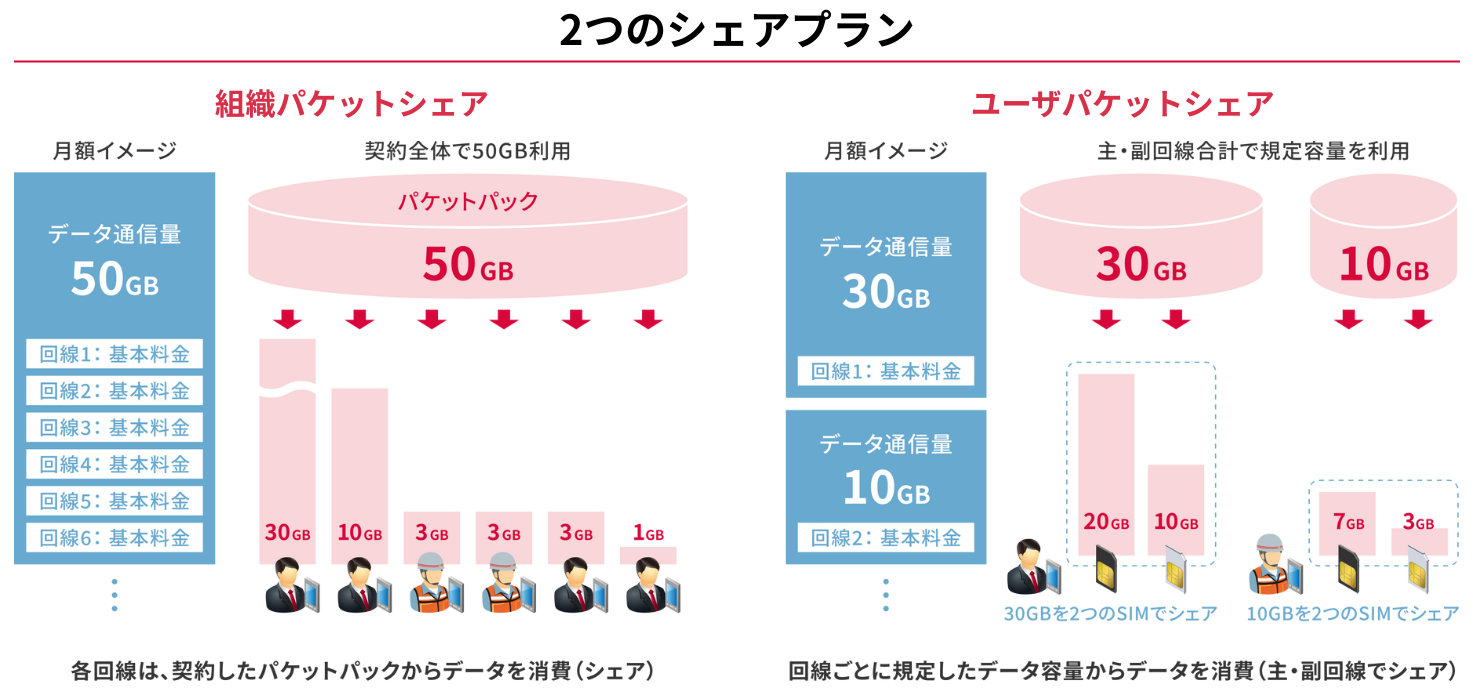 「例えば2つの回線を個別に契約した場合、各社で使えるデータ通信量(ギガ)は決まっています。当社の場合はこのデータ通信量を共通化しているため、“どちらを何ギガ使ったか”ということを意識する必要はありません。また、組織単位で共通的なギガを設定するプランも用意しており、職員によって使う通信量の多寡があってもそれを合算して考えることができます」。