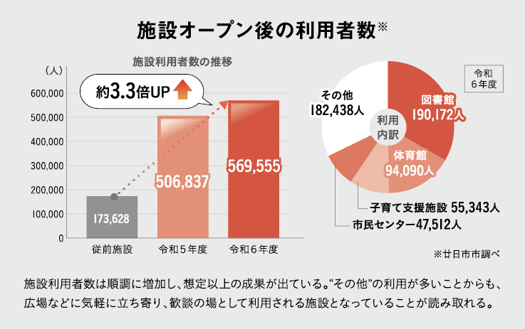 利用者から“旧施設のルールと違う”“図書館がにぎやかすぎる”といった意見は出たが、運営担当者がその都度説明してきた。「丁寧な対応で、市民の皆さんから喜ばれています。色々と要望はあるものの、市役所まで苦情が来ることはほとんどなく、とても助かっています」。