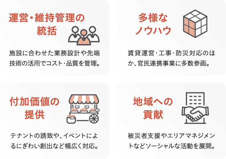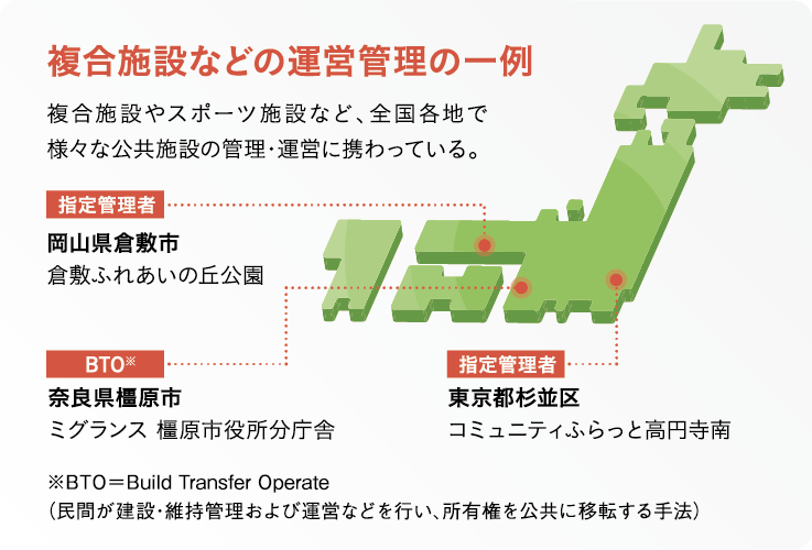 公共施設や大型スポーツ施設などの管理で培った実績とノウハウを活かし、顧客視点に立ったサポート力を強みに全国で事業を展開している同社。「国土交通省PPPパートナー」として、PPP/PFI※3に関するセミナー開催や相談対応なども随時行っている。