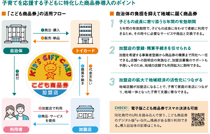 核家族化が進み、物価高も加わって子どもを育てる環境は厳しい。だからこそ、子育てを楽しめる支援が必要だと小林さんは語る。「子どもの成長を喜び、支える地域をつくり、当市で子どもを産んでよかったと思ってもらいたいですね」。子育て支援で消費が循環すれば、地域も元気になれる。まちが一体となって支援する意味は、大きいといえるだろう。