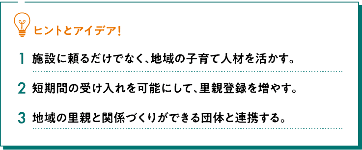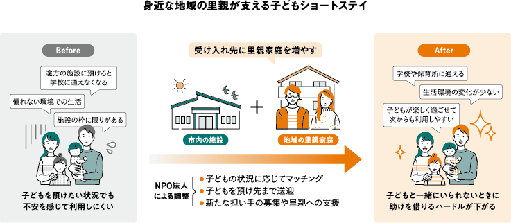 民間と連携して里親を募集し、短期養育の受け入れを強化。