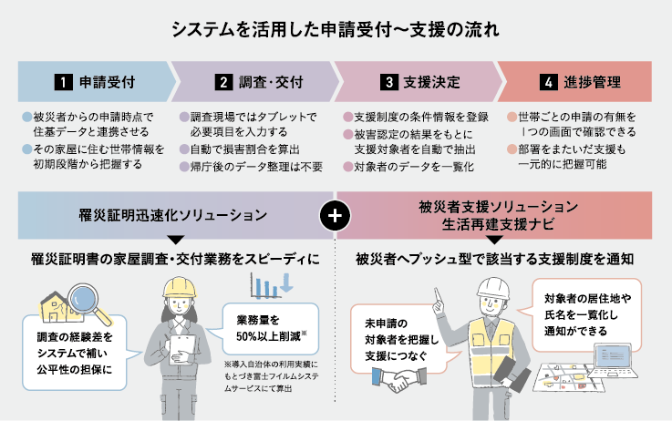 大規模災害を何度も経験した福島市は、防災DXの重要性を痛感。そこで、罹災証明書の交付から生活再建支援まで、一気通貫で行えるシステムの共同研究を「富士フイルムシステムサービス」とともに進めているという。