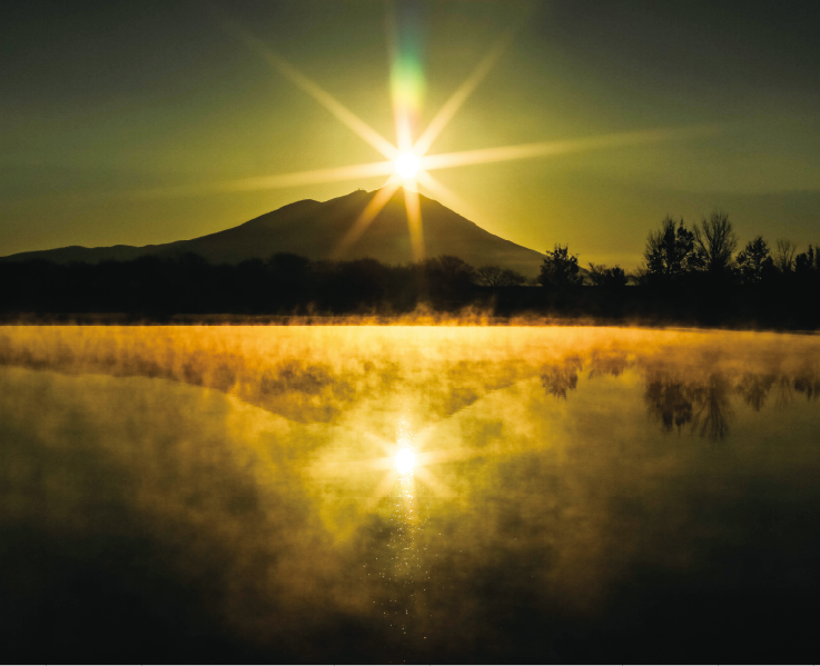 筑波山頂から太陽が昇る瞬間に光彩を放つ“ダイヤモンド筑波”。母子島(はこじま)遊水地では、毎年2月と10月にだけ水面に映る様子も楽しめることから、筑波山ベストビュースポットとなっています。