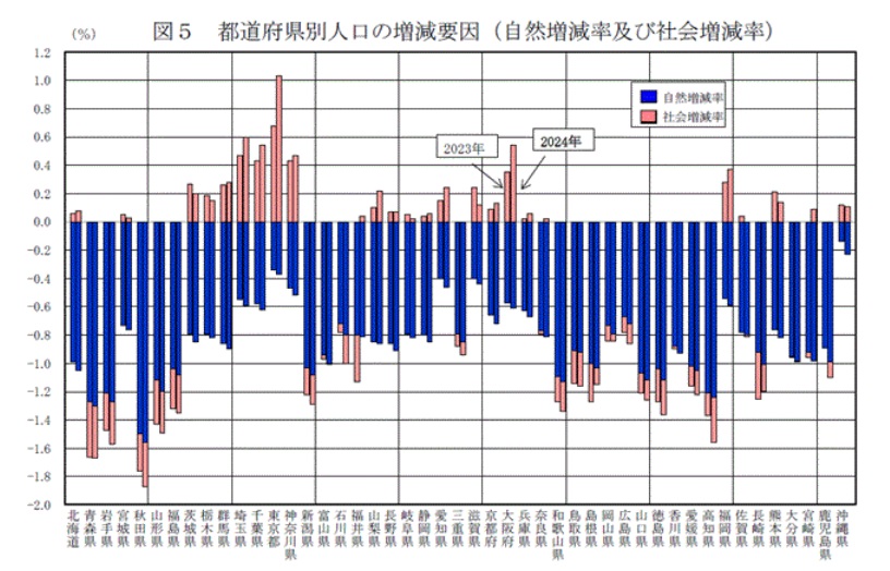 出典:総務省統計局「住民基本台帳人口移動報告 2024年(令和6年)結果」
