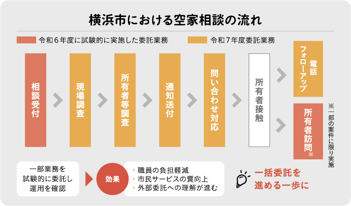 空家に関する相談件数は、今後ますます増える見込みだ。「当市では高齢の単身世帯が増加しており、将来的に管理が行き届かない空家が増えていく予想です。そうなると、職員の業務量も膨らむと考えています」と髙木さん。こうした課題を改善するため、同市は空家初期対応業務の段階的な委託に乗り出した。