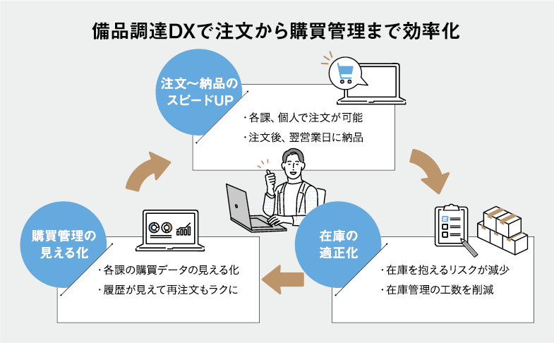 身近な備品調達業務を入口にDXを広げ工数削減につなげる。