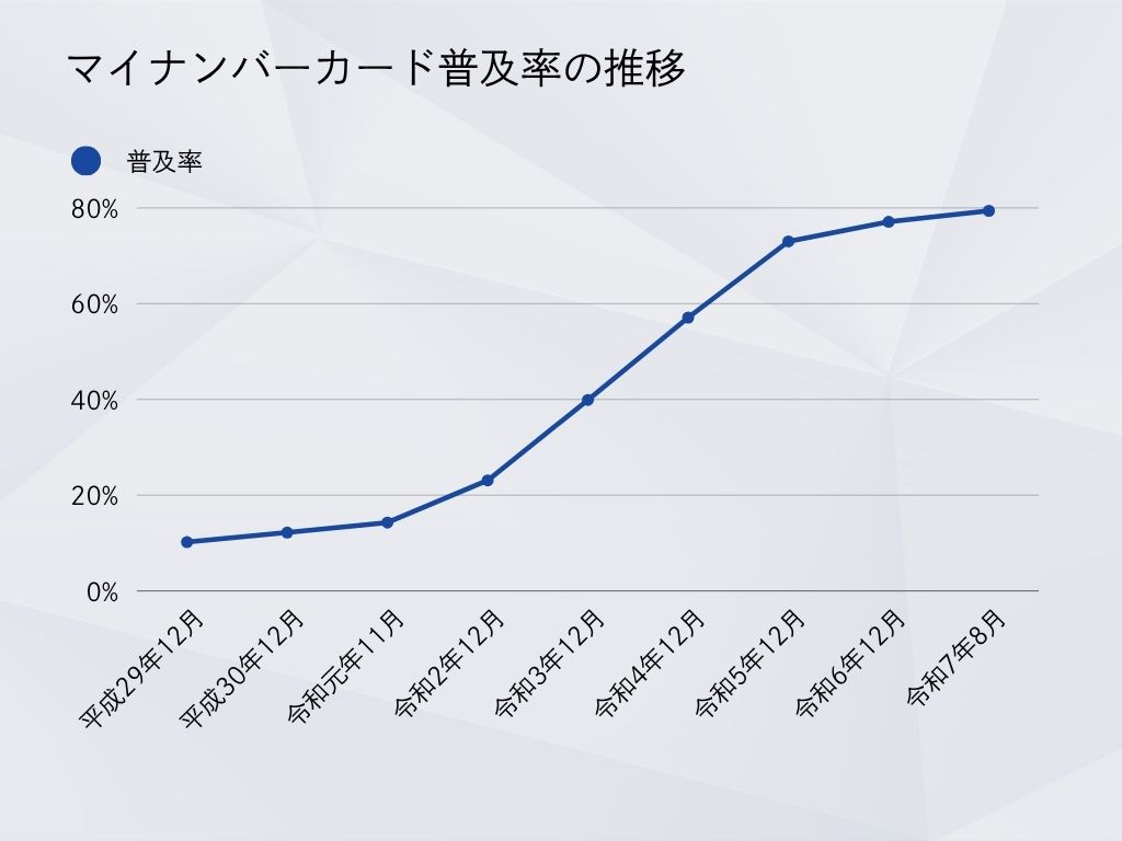 現在は伸び率が緩やかになっているものの、全国平均は80%に迫りつつある。今後は、単なる申請促進だけでなく、住民が「持っていて便利」から「使って便利」へと実感できる利用促進策が、普及率向上のカギとなる見通しである。