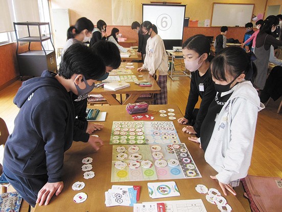 ゲーム内容は、様々な資源カードを使ってアイテムカードをゲットしていくというもので、メガソーラー発電所、フードドライブといった市の取り組みや、地域の特産品なども登場。再生可能な資源をうまく使えば高得点が獲得できる。職員が小・中学校を訪問して遊び方を教え、児童生徒から喜ばれると同時に、教員からも「体験を通して学べる」と好評だ。「今後は親子ワークショップなどでゲームに触れていただく機会を広めたい」と担当者。笑顔の広がりとともに、環境意識や地域愛も醸成されていくことだろう。