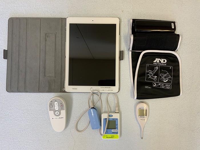 看護師が使用する機材。測定した患者のバイタルデータをリアルタイムで送信し、遠隔から確認できる。