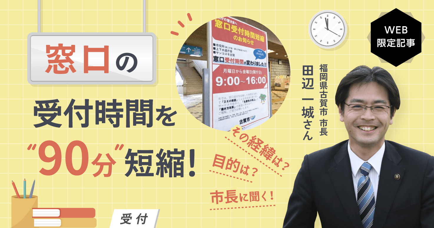 複合的な取り組みから生まれた、窓口の受付時間短縮というアイデア。 市民に思いが伝われば、新しいチャレンジも成功するはず! 明るい未来をひらくために必要なのは、決断、覚悟、気合い。 ―古賀市は令和7年1月から窓口の受付時間を9時~16時としました。90分の短縮は全国でも異例ですが、経緯をお聞かせください。 ―そうした経緯での“90分短縮”だったんですね。その場で決定したのですか。 窓口短縮を実施して